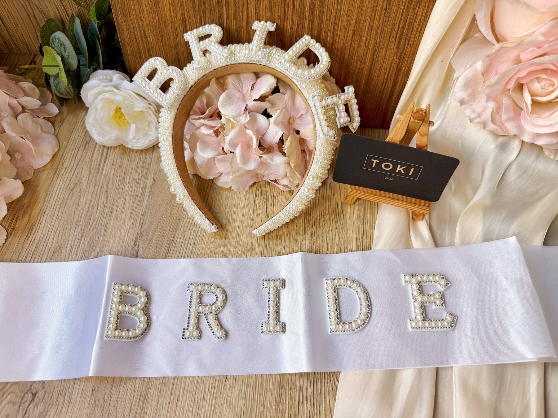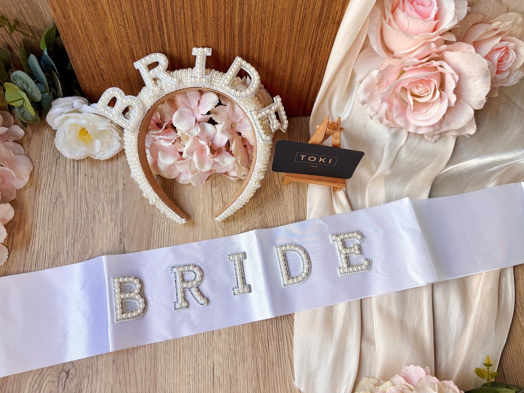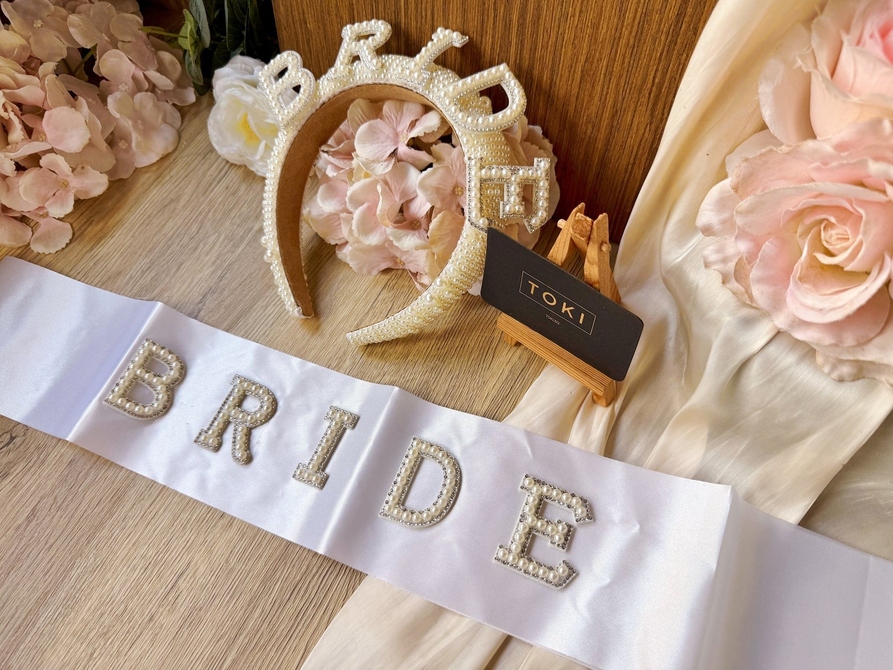 Celebrate your bachelorette party in style with this elegant set featuring a "Bride" sash and matching hairband adorned with pearls. The delicate pearls add a touch of sophistication, making you stand out on your special day. Comfortable and lightweight, this set is perfect for a memorable and fun celebration.