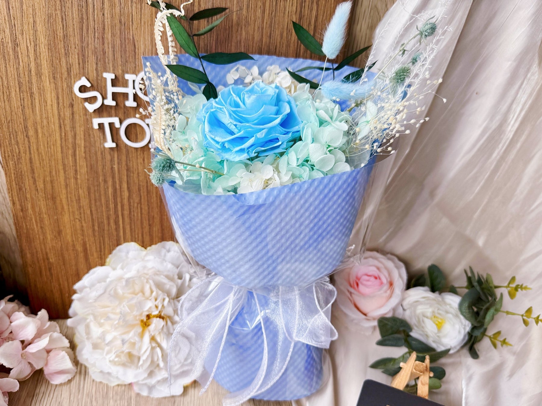 Experience the beauty of "Love In Full Bloom" with our stunning preserved premium rose. Nestled among other preserved filler flowers, this 7-8CM rose is a simple yet majestic way to celebrate your love. Perfect for any romantic occasion.
