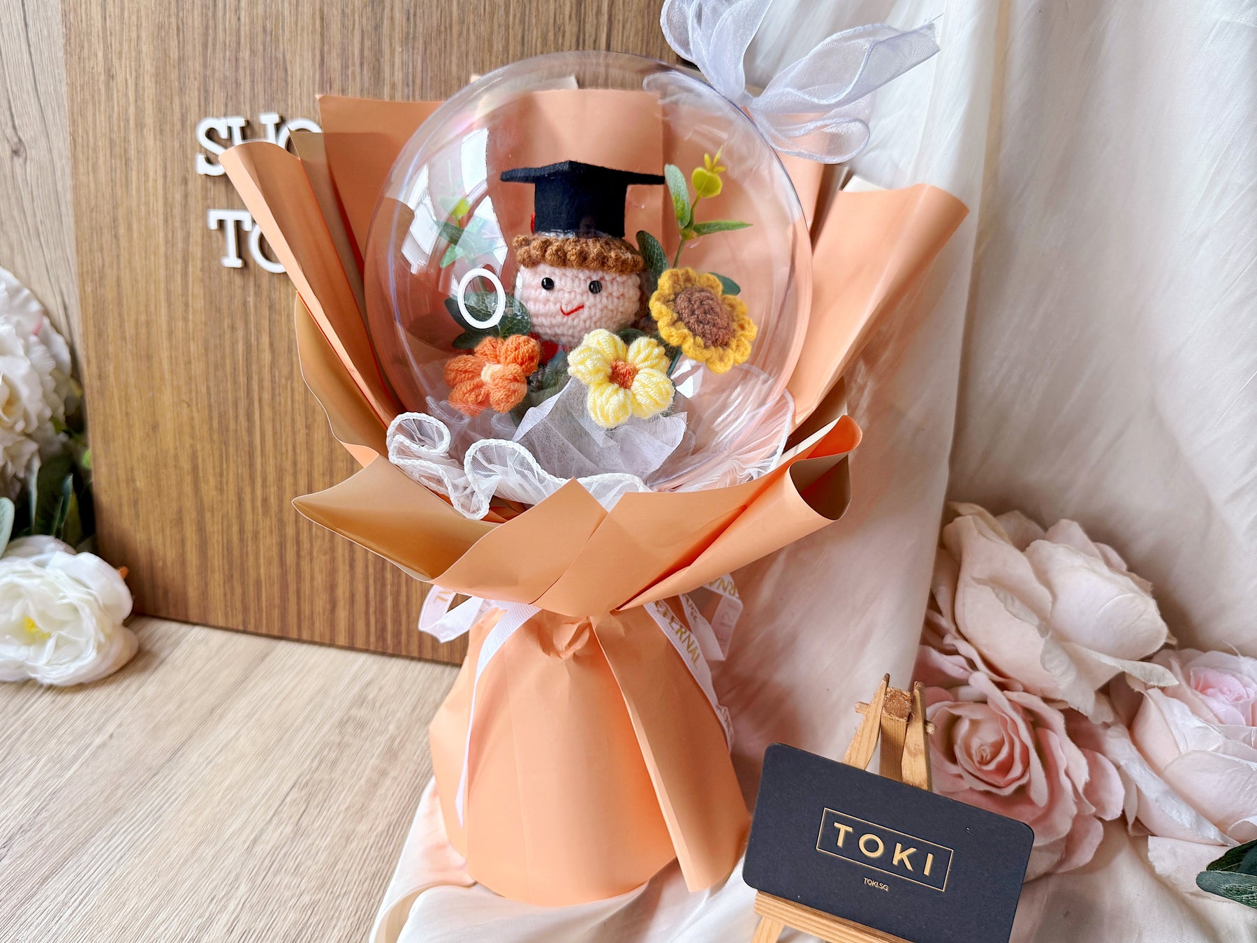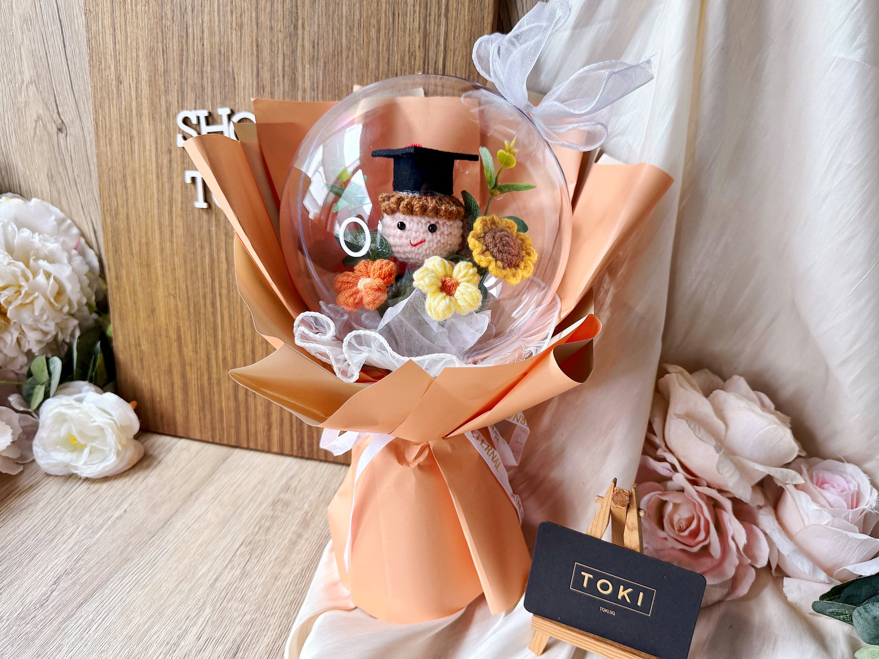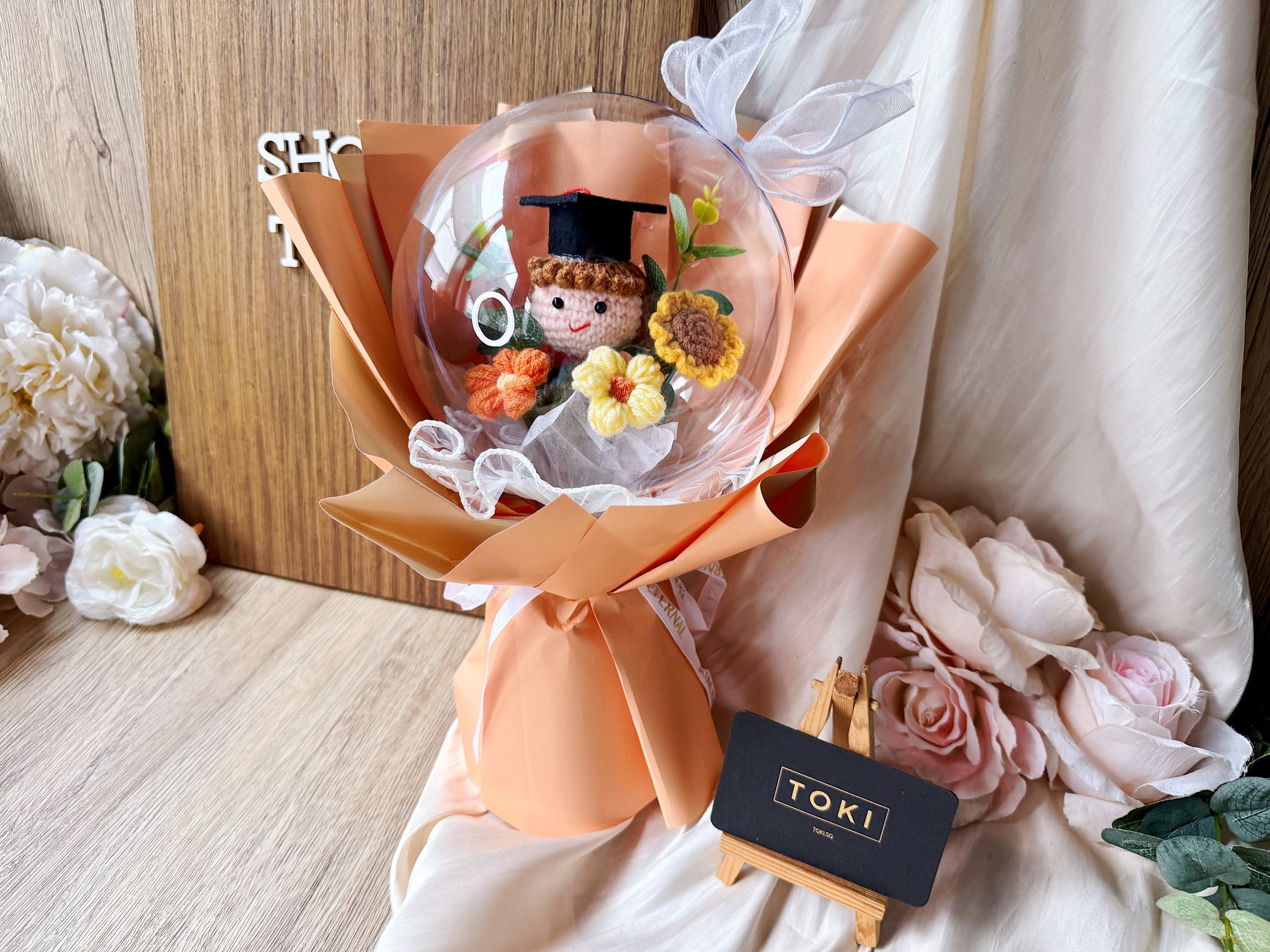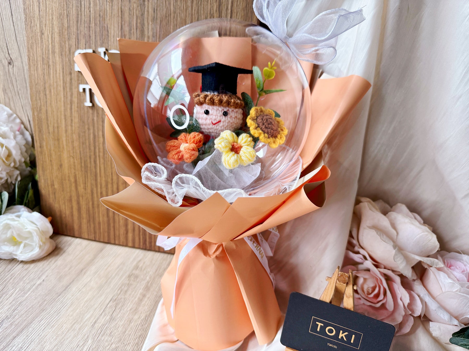 Celebrate your graduate's achievement with the "Top Of the Globe!" Crochet Graduate Bouquet. This charming crochet globe bouquet makes a unique and lasting gift, symbolizing success and new beginnings. Affordable and handcrafted, it offers a special way to honor their hard work that will be treasured for years to come.