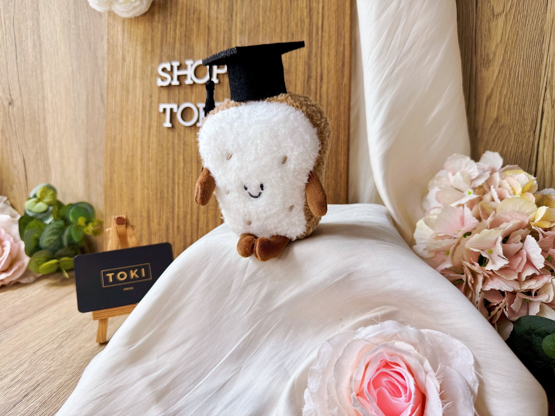 This adorable soft toy is perfect for standalone gift or as part of a bouquet. It's ideal for graduation celebrations, adding a touch of charm to any celebrations. Unique to TOKI!