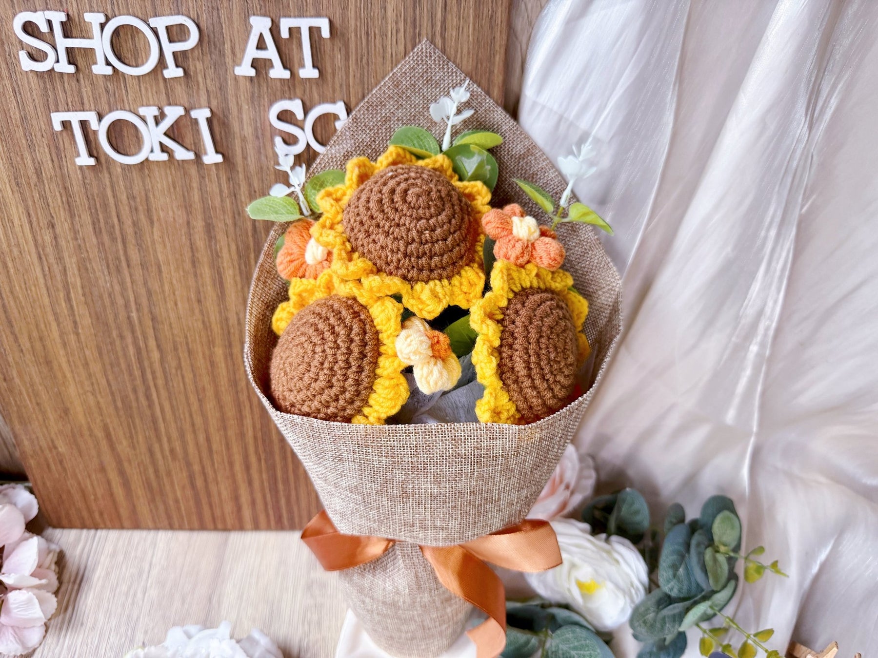 Embrace the beauty of simplicity with our 3 Crochet Sunflower Bouquet. Handcrafted with care, these charming sunflowers add a touch of warmth and elegance to any space. Perfect for all genders and occasions, bring a touch of nature into your home with our crochet sunflowers.