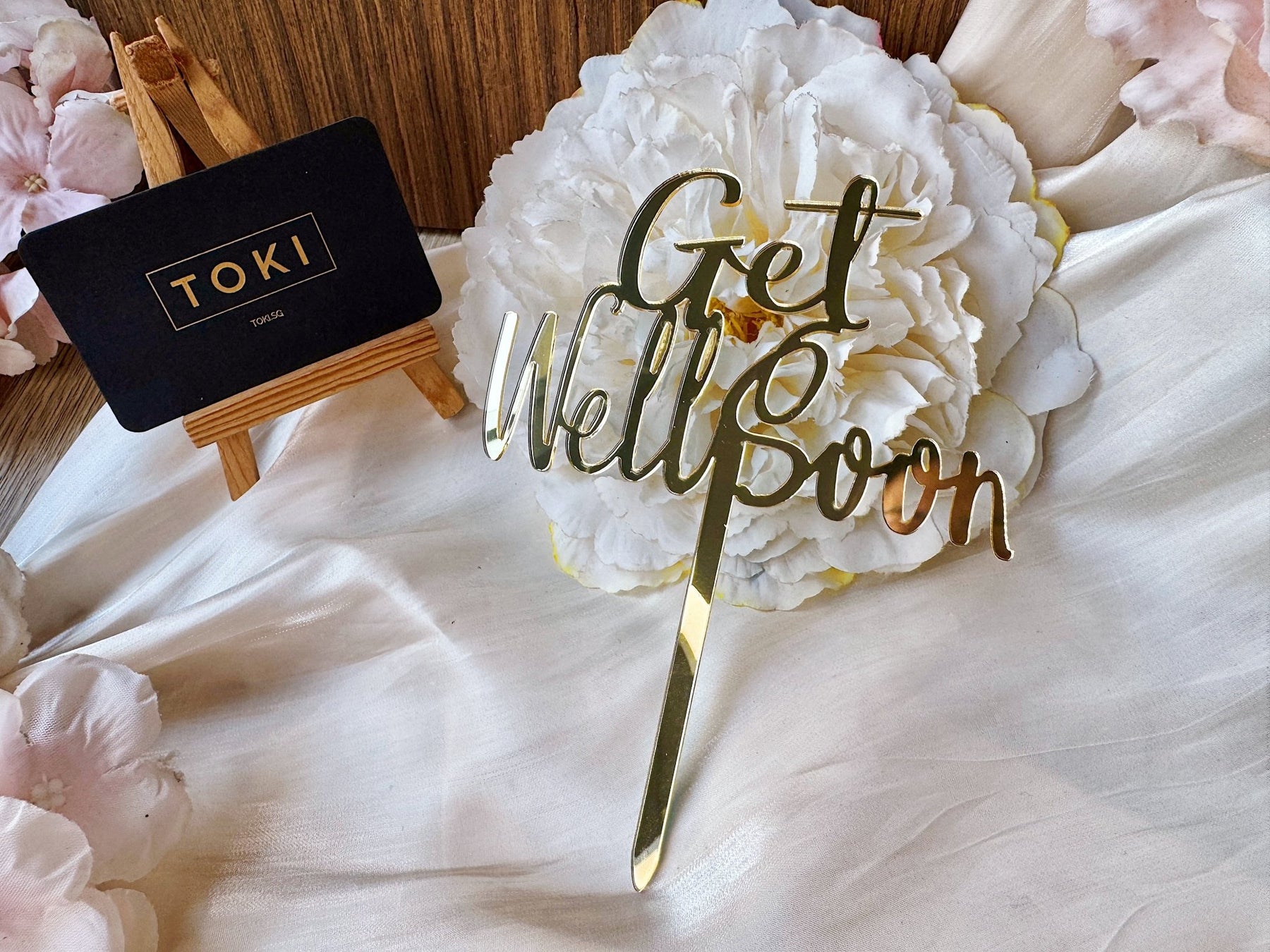 TOKI - (Add - On): "Get Well Soon" Gold Topper, Flower Toppers, Get Well Soon /