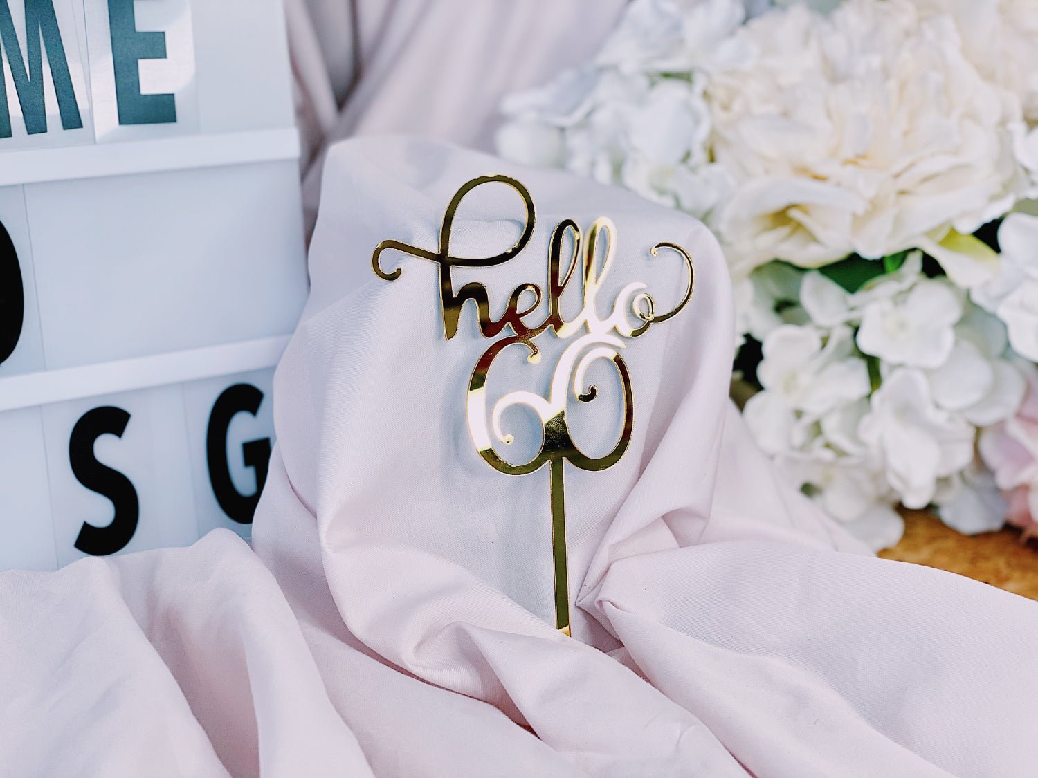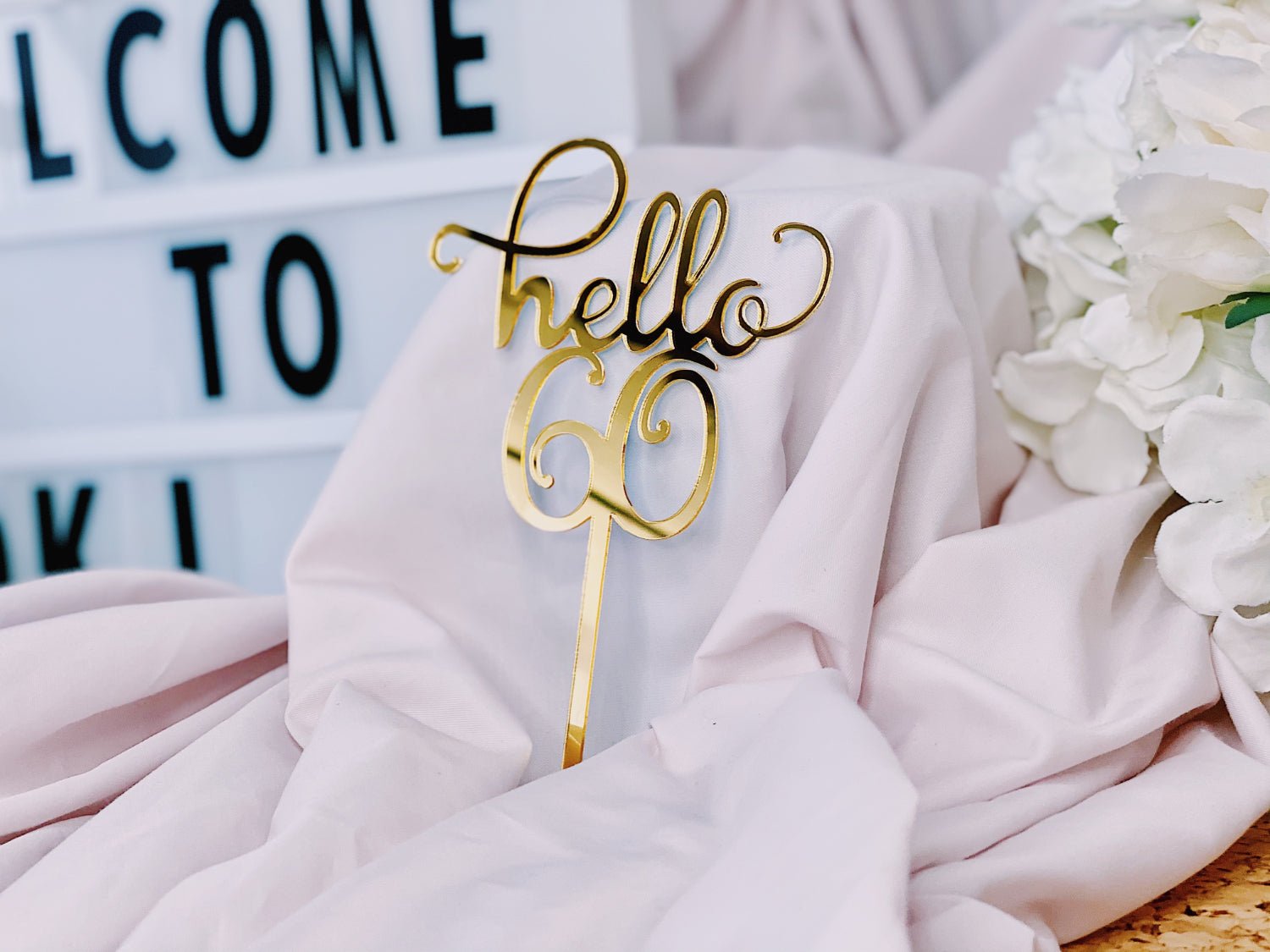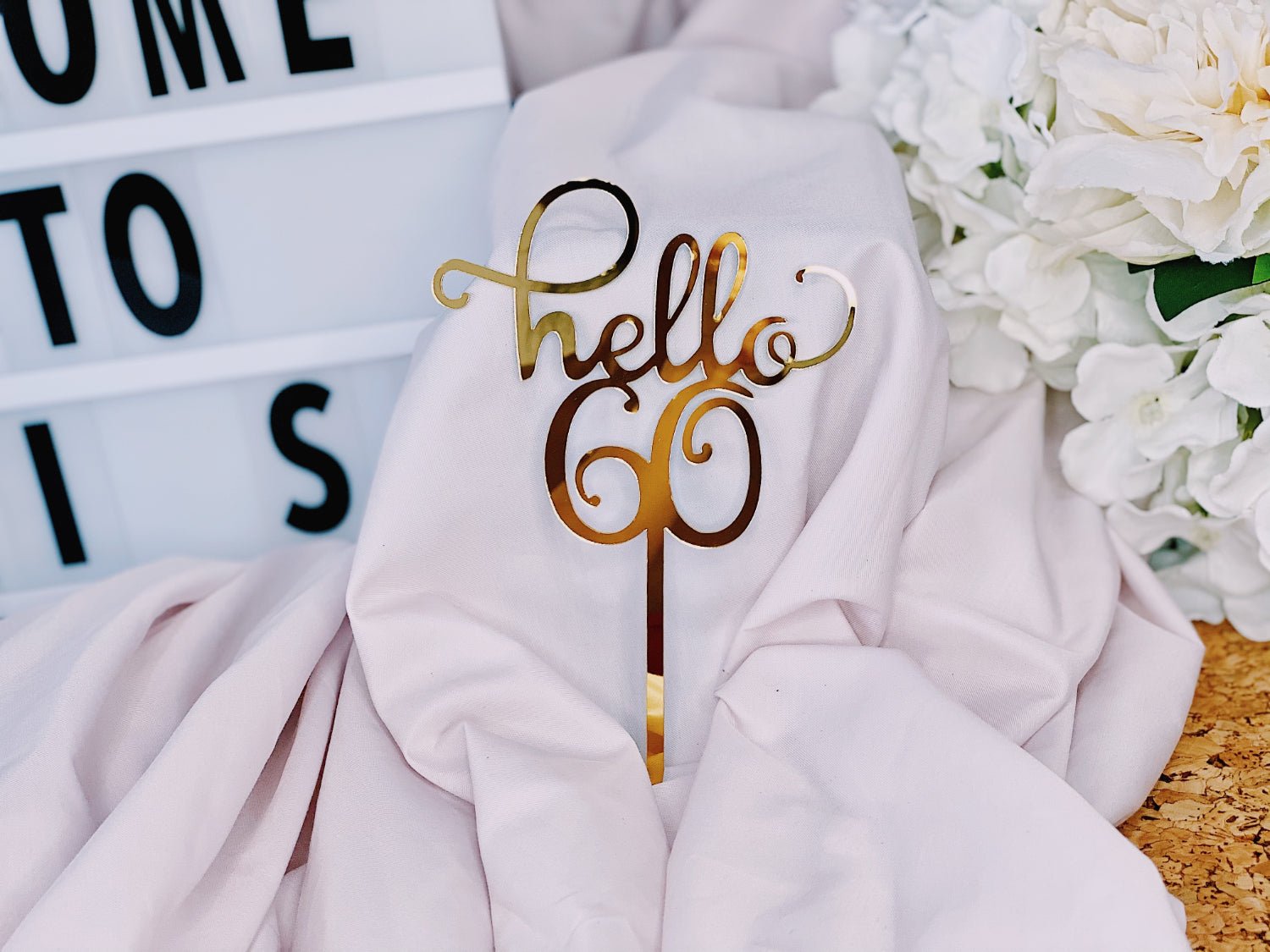 This "Hello 60" Birthday Gold Topper is a perfect add-on to your floral arrangements, adding a festive and elegant touch to celebrate a special 60th birthday. Its shiny gold finish complements flowers beautifully, making your celebration even more memorable and visually striking.