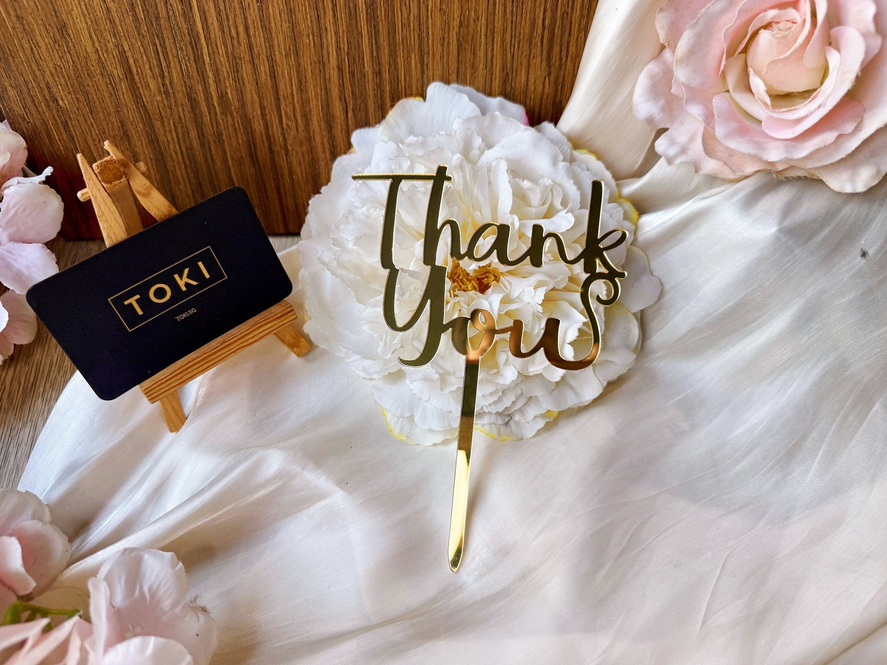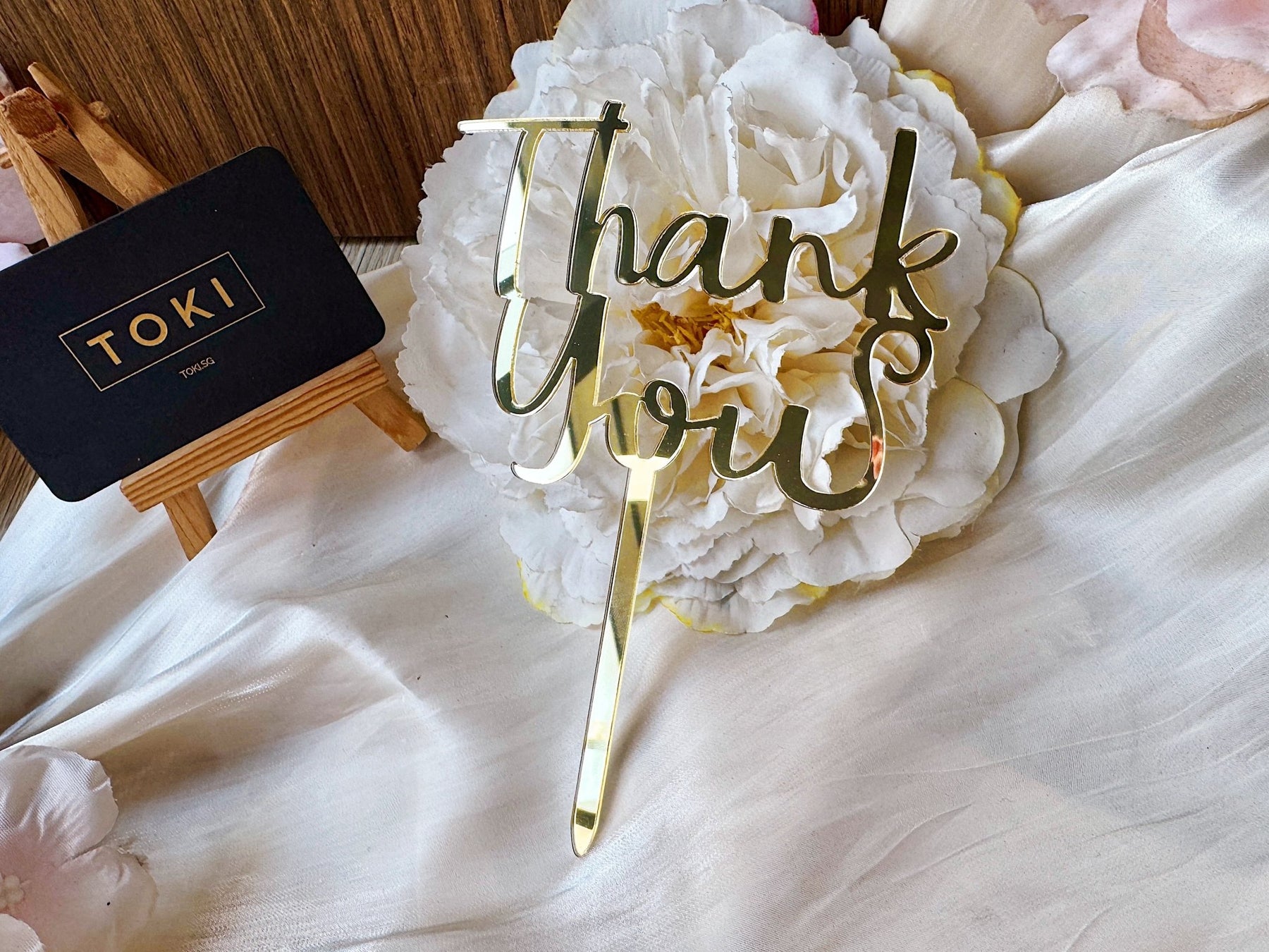 Add a special touch to any flower arrangement with the "Thank You" Gold Topper add-on. This elegant gold accent expresses your gratitude clearly and beautifully, making your gift even more meaningful. Perfect for showing appreciation with style.