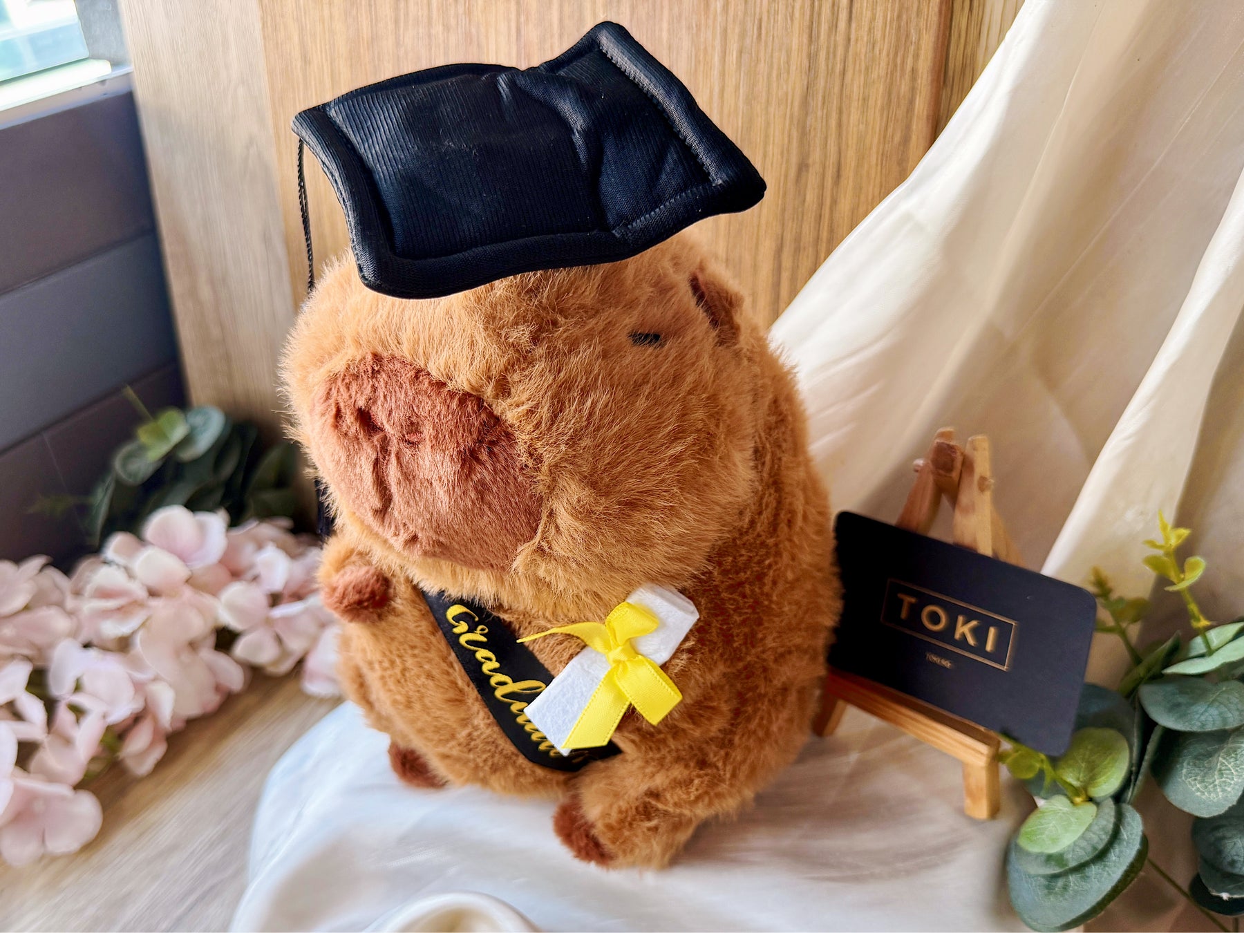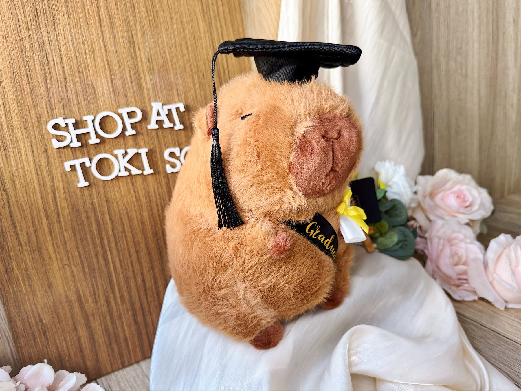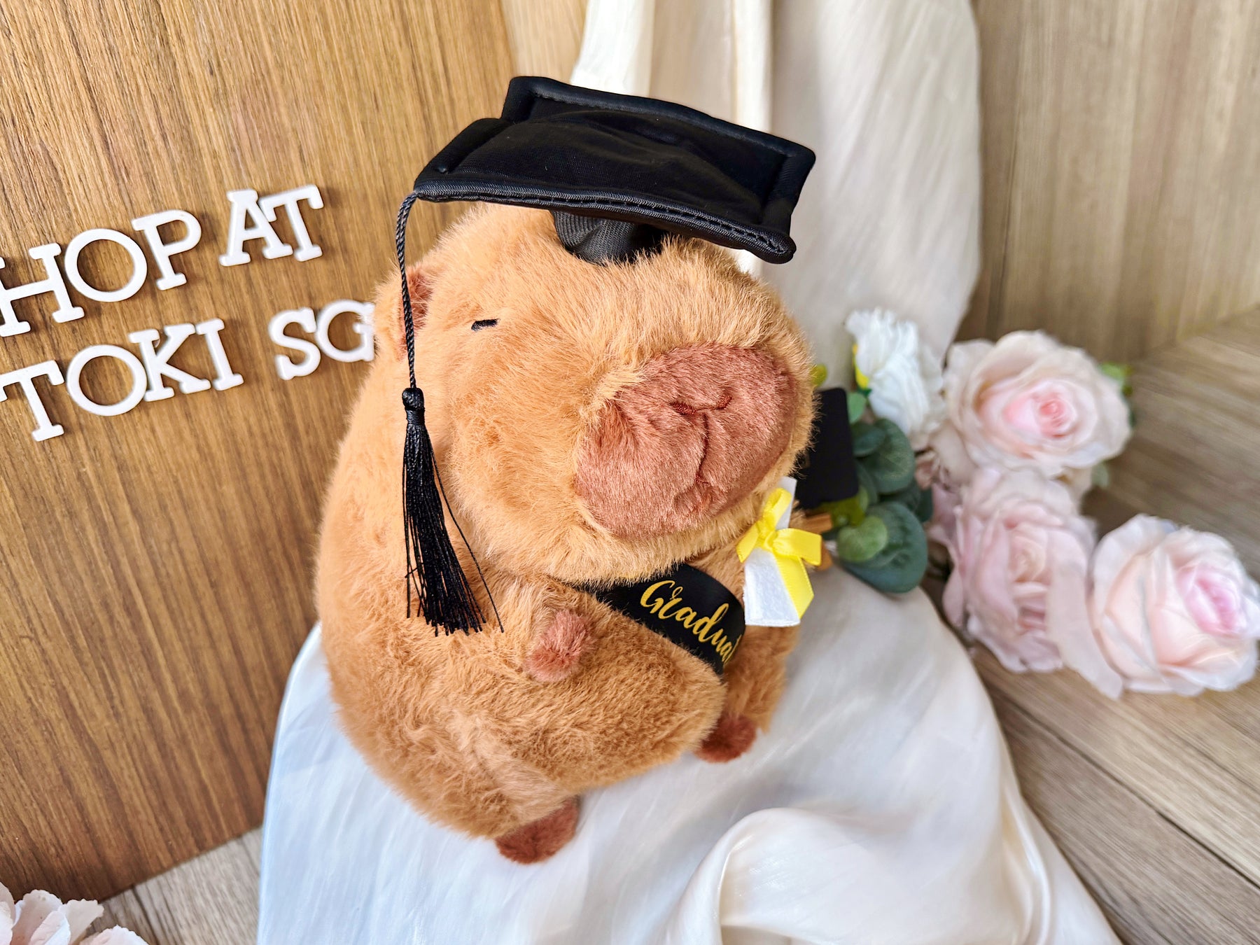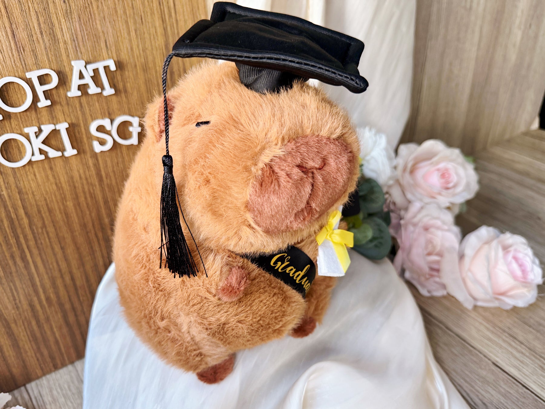 Introducing our cuddly Capybara plush! At 26CM, it's the perfect size for hugging and comes with a mortar board, sash & certificate. Makes a great gift for any graduate!