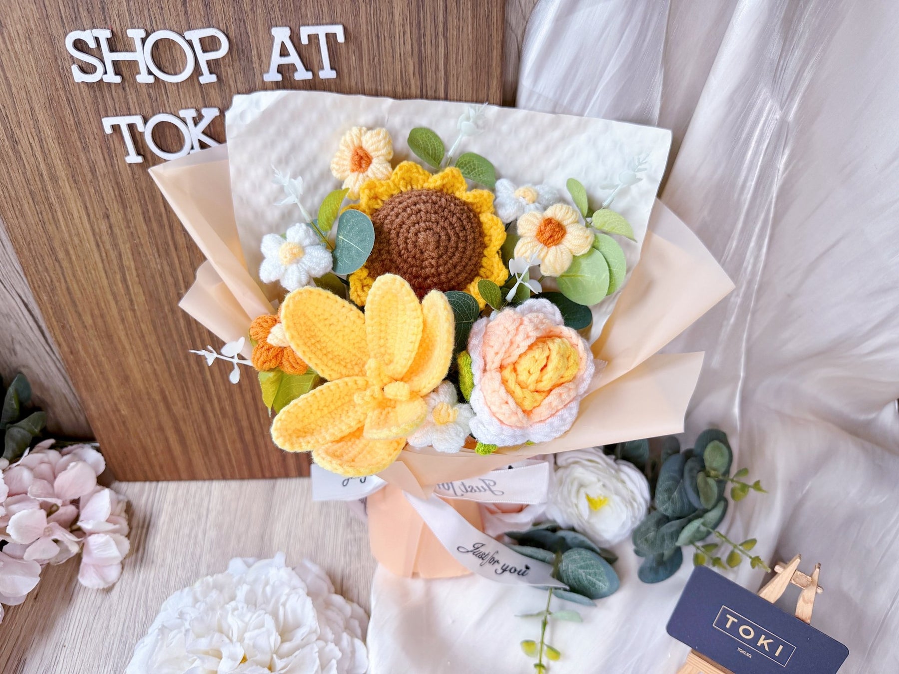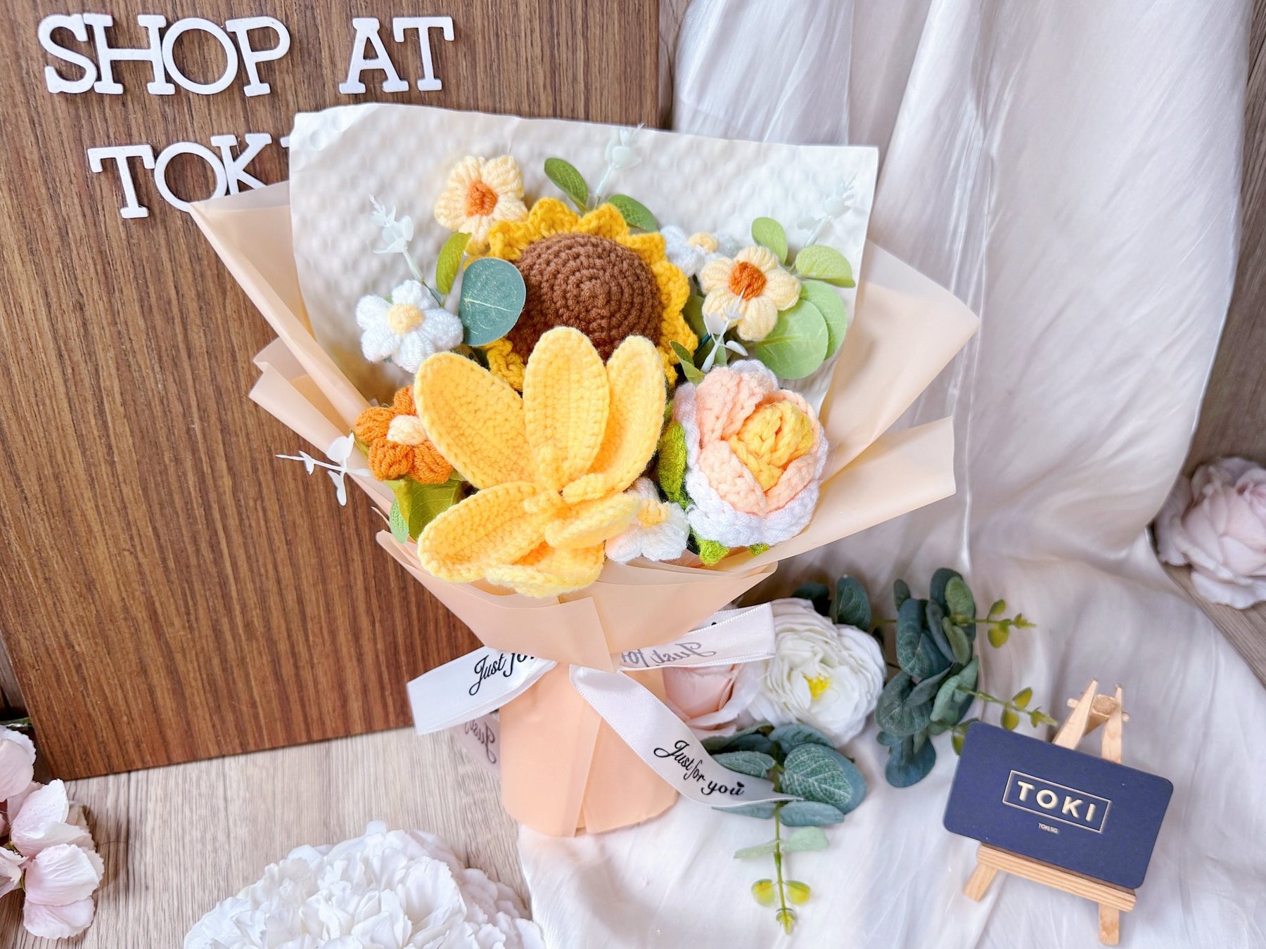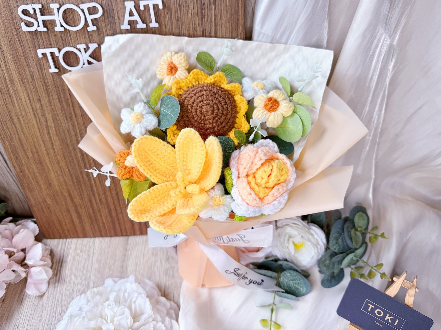 TOKI - Crochet Sunflower, Lily & Rose Bouquet - Yellow, Flowers, Birthday / Graduation