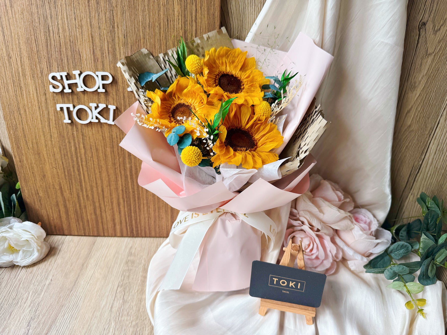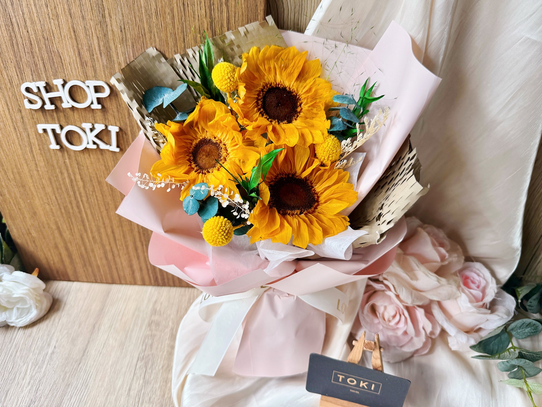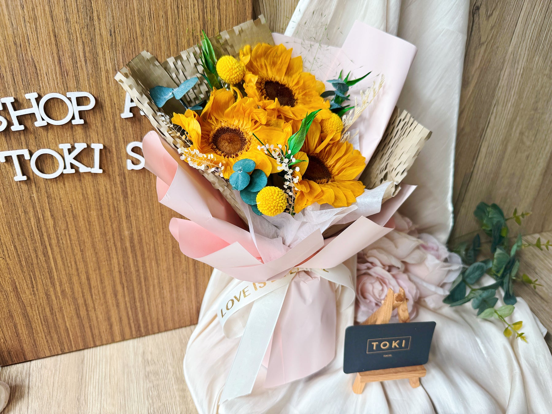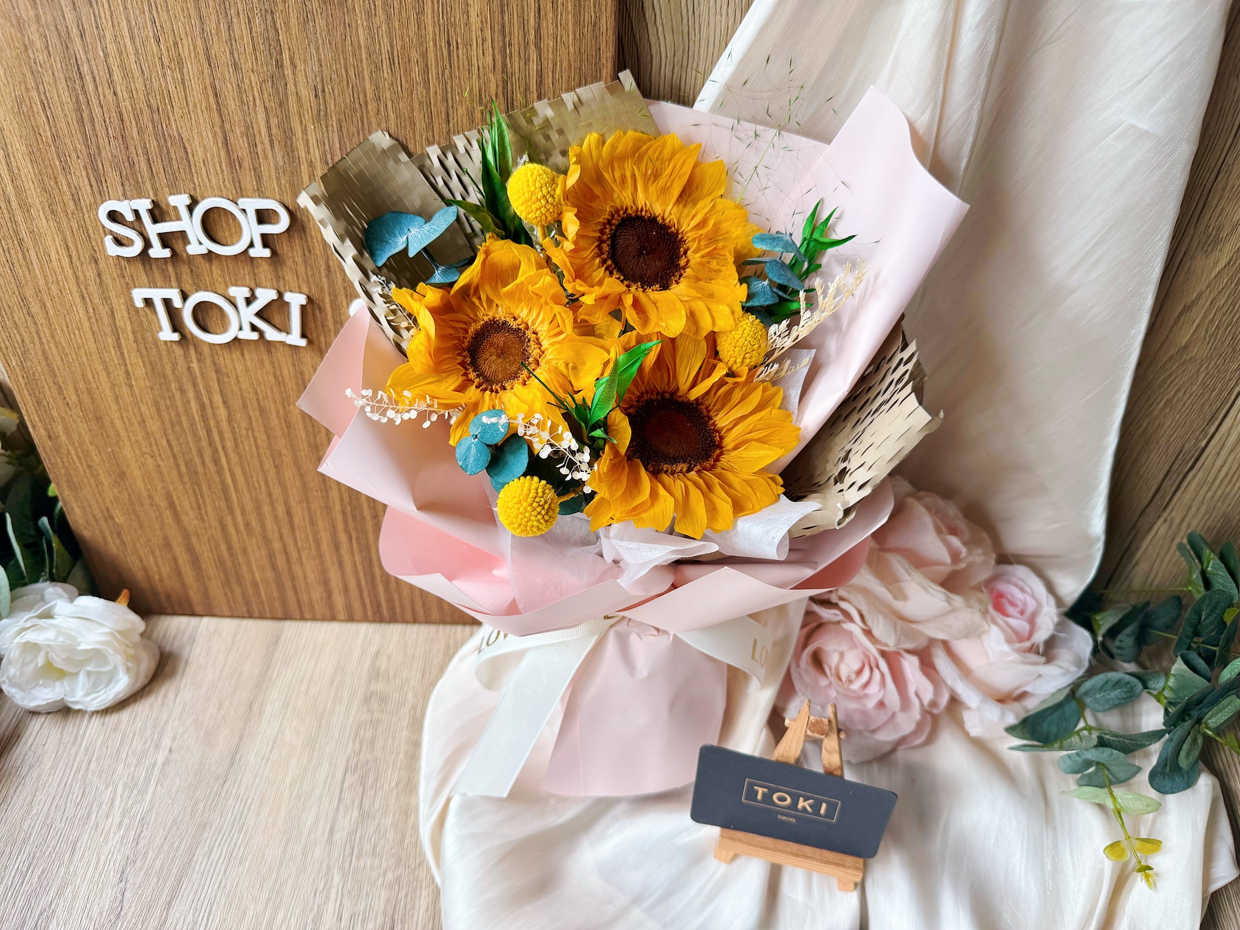 Spread sunshine and cheer with our "Sunshine" preserved sunflower. Made from fresh sunflowers, this everlasting flower is affordable and perfect for graduation or to brighten someone's day. No need to water, just enjoy its sunny charm!