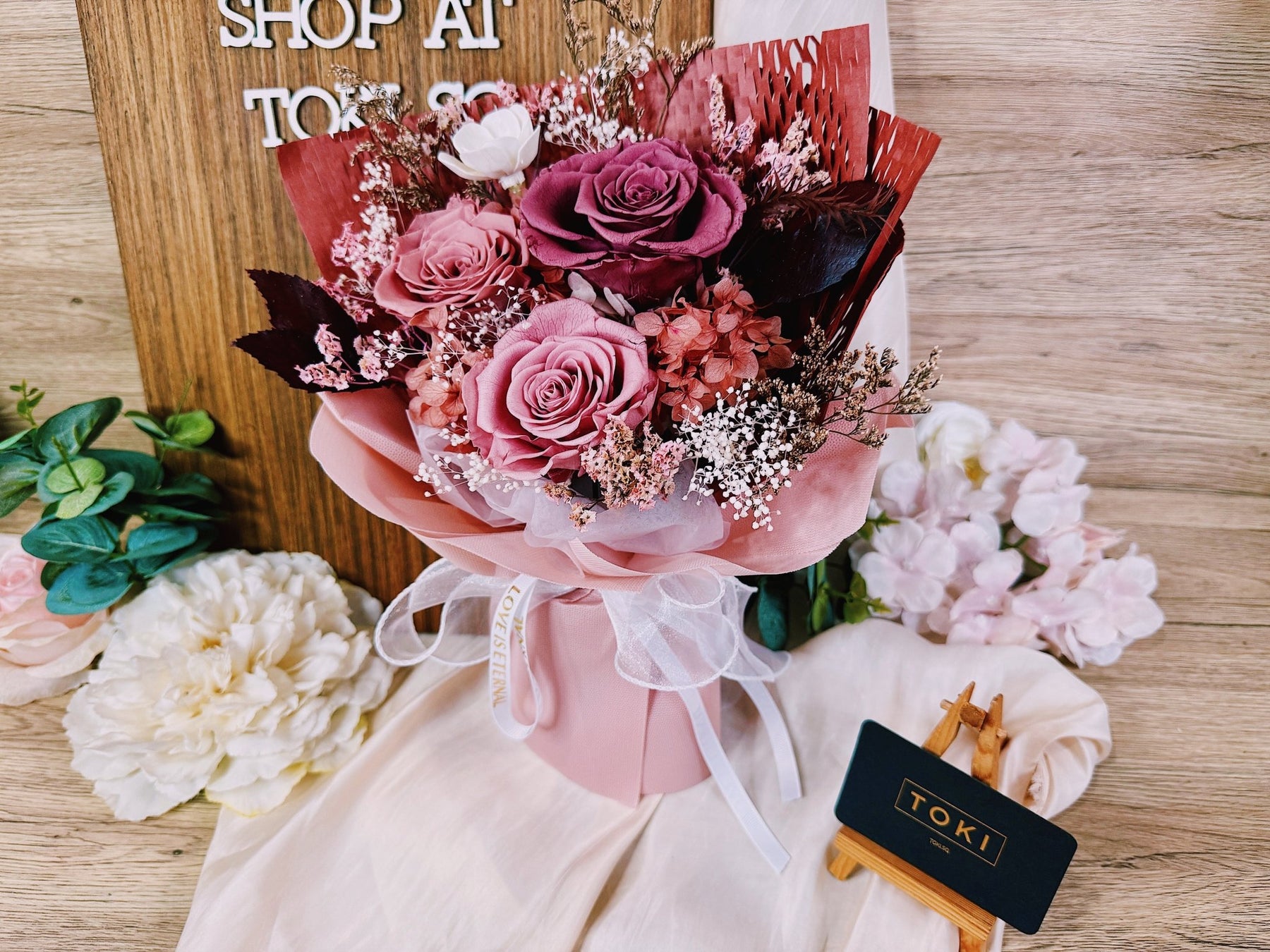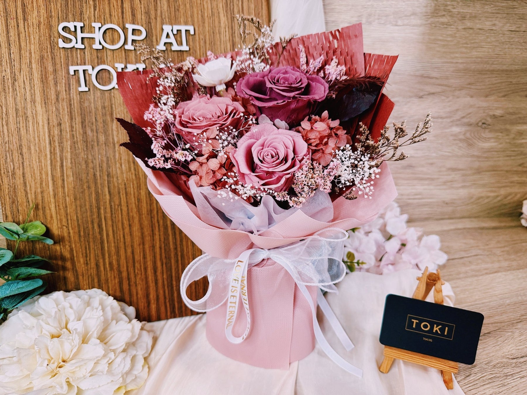 • Preserved & Dried Flowers will not wilt and remain as is for months with proper care