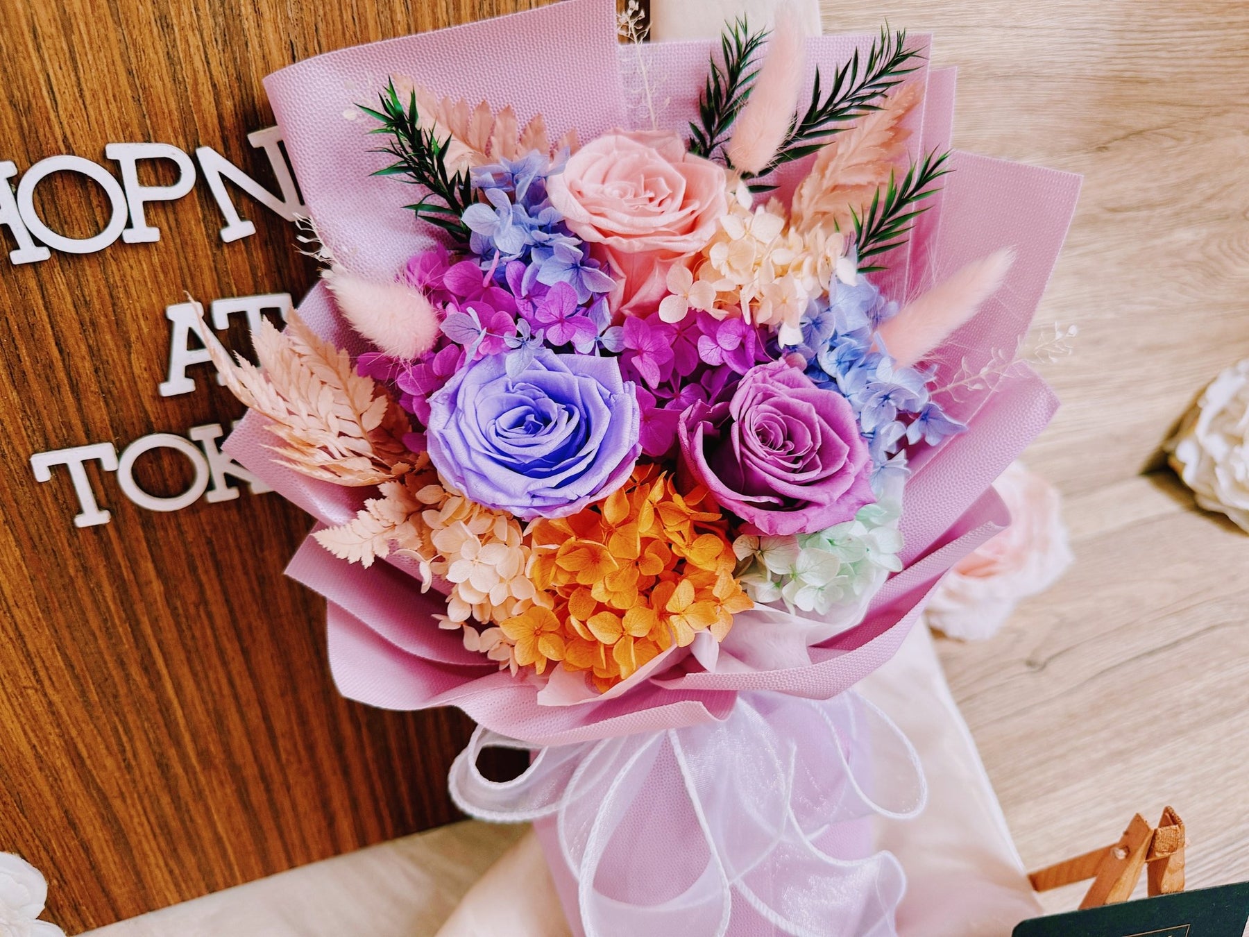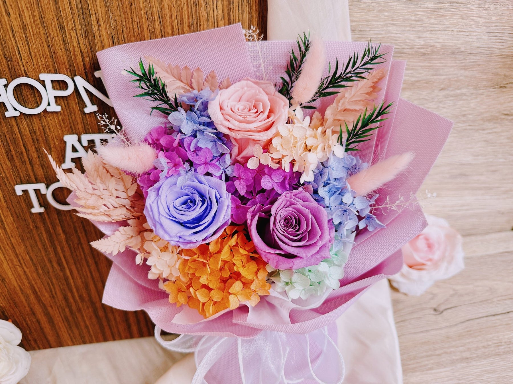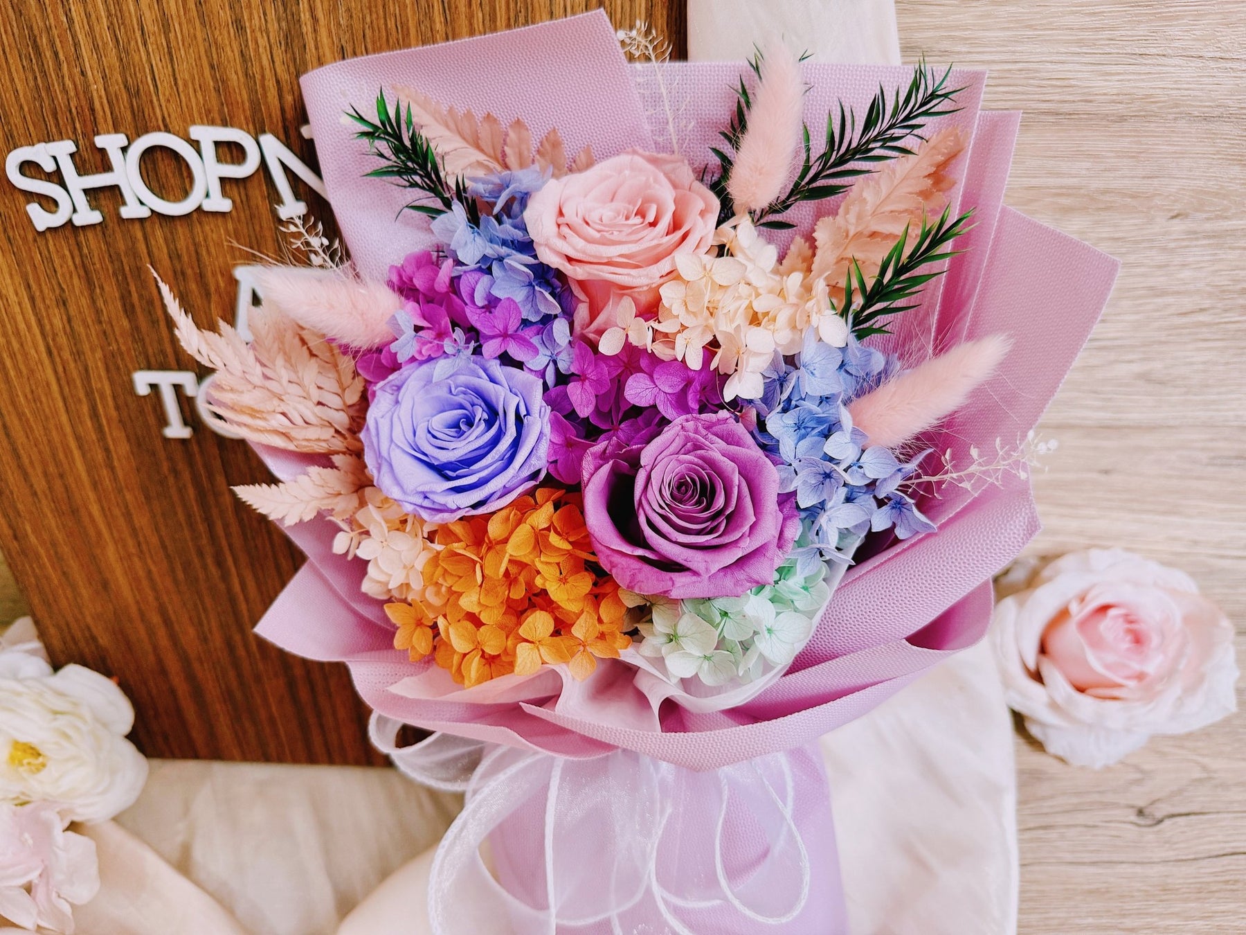 • Preserved & Dried Flowers will not wilt and remain as is for months with proper care