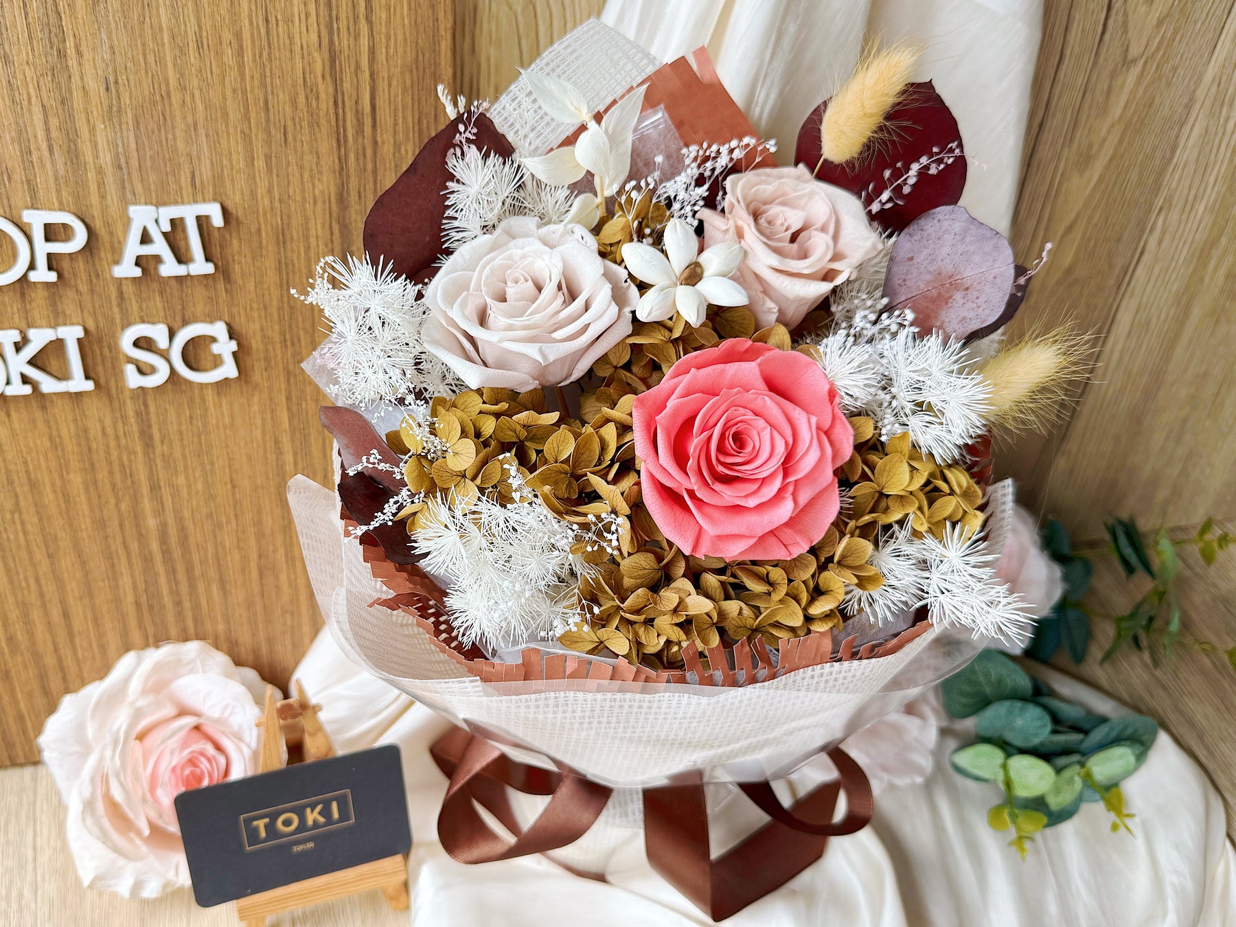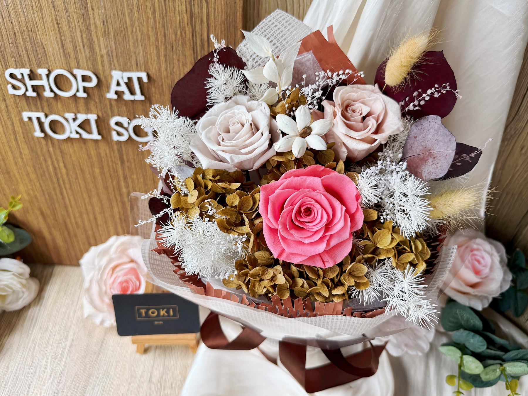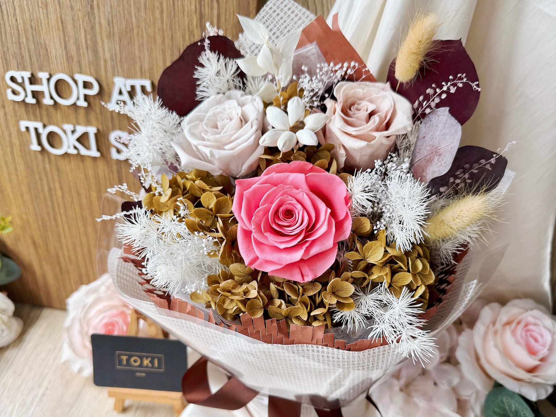 • Preserved & Dried Flowers will not wilt and remain as is for months with proper care